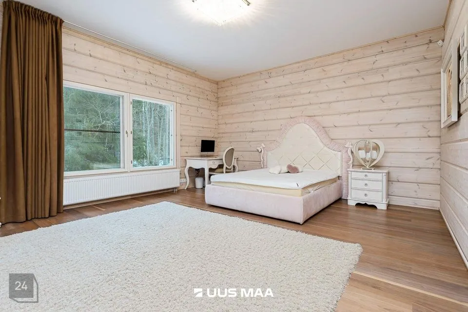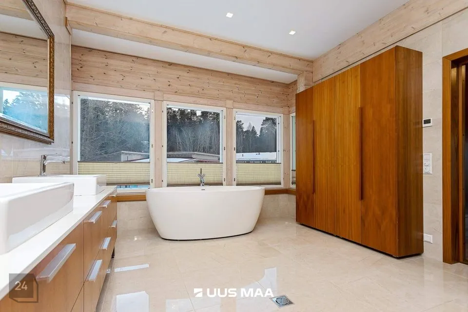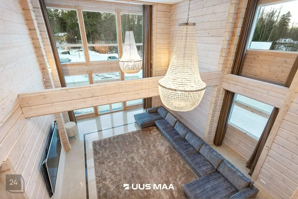 This is a Honka house. The primary material of a Honka home is ecological and long-lasting wood grown in Finnish forests, which creates the basis for a safe and healthy living environment. Wood naturally has the ability to absorb moisture from the air and release it in drier conditions, meaning the moisture level in a solid wood house never rises to a dangerous level.