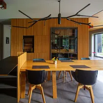 - Kitchen equipped with all necessary appliances (electric stove, refrigerator, kitchen furniture, extractor hood) and a dining table.