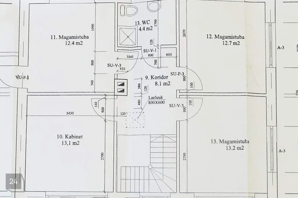 II korrusel asub: trepihall; 4 magamistuba; wc-vannituba.
