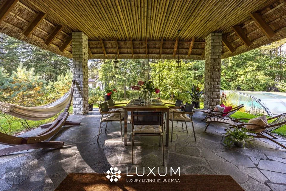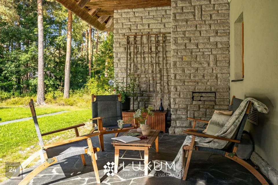 Elutoast avanevad topelt uksed terrassile, mis meenutab oma õhustikult justkui troopilist villat– kaetud kivi- ja puidulahendus, rookatus, vaated rohelusse ja täielik privaatsus. Siin on võimalik nautida nii vaikseid hommikuid kui ka õhtusööke suurema seltskonnaga.