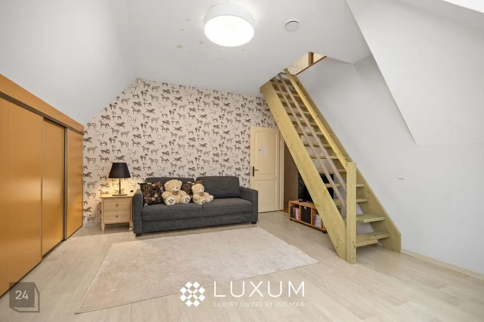 Teisel korrusel asub privaatne peamagamistuba koos avara walk-in garderoobiga. Samal korrusel on kaks laste- või külalistuba, mille nutikalt lahendatud trepp viib teisele tasapinnale – ideaalne mängu- või õppimisnurk. Lisaks on siin ka tööruum ning suur valgusküllane vannituba.