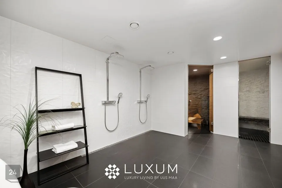 0 korrusel on kui omaette spa. Saun, aurusaun, topeltdušid ja tõeliselt hubane sauna eesruum – ideaalne koht lõõgastumiseks pärast pikka päeva.