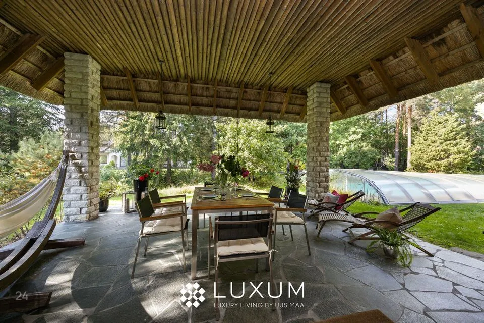 Villa suurimaks väärtuseks on erakordne aed – iga aiaarmastaja unistus. Hooldust vajab vähe, kuid ilu pakub palju. Läbi suve õitsevad hortensiad ja roosid, metsatukast leiab mustikaid, jõhvikaid ja seeni, suur bassein, mis rõõmustab kogu pere suvekuudel ja privaatne tenniseväljak sportlikeks väljakutseteks.