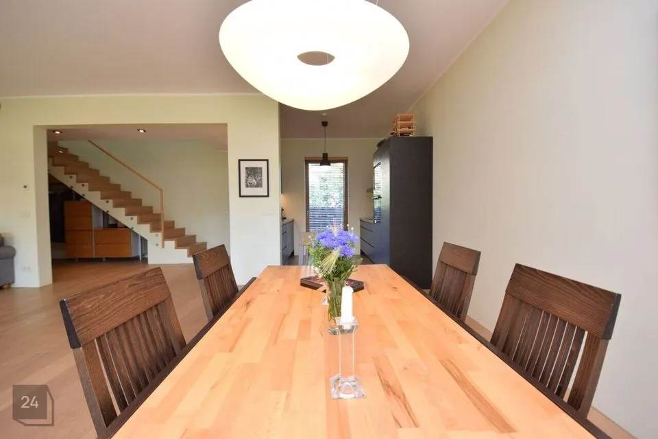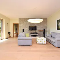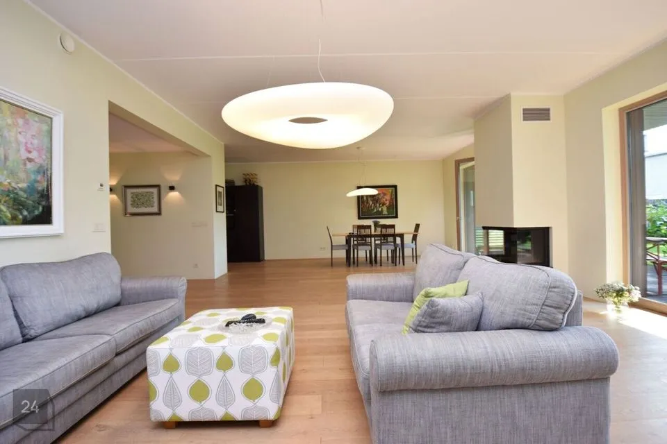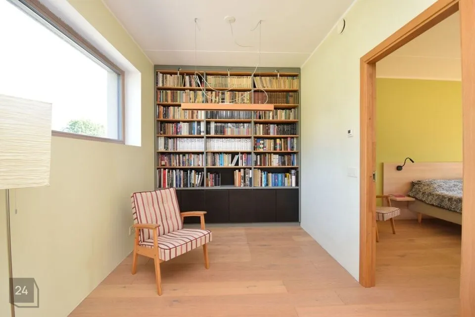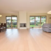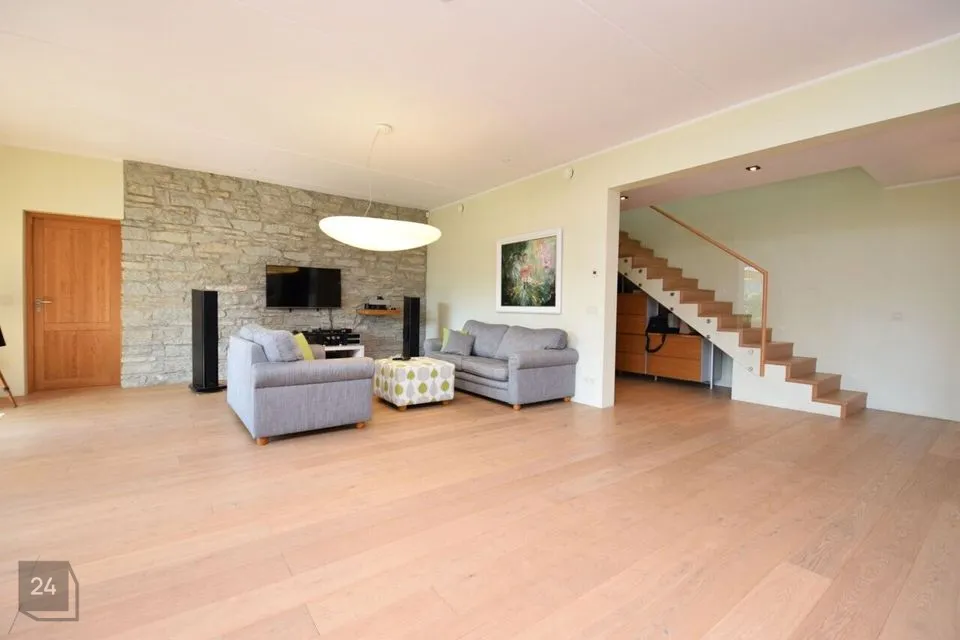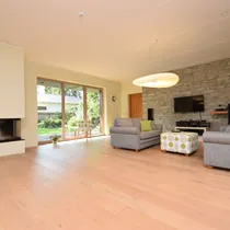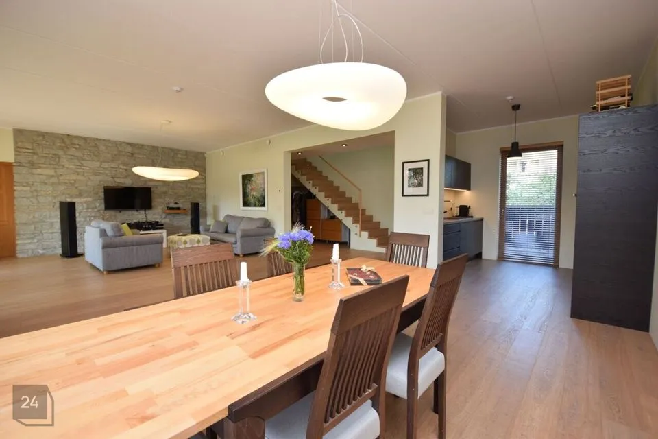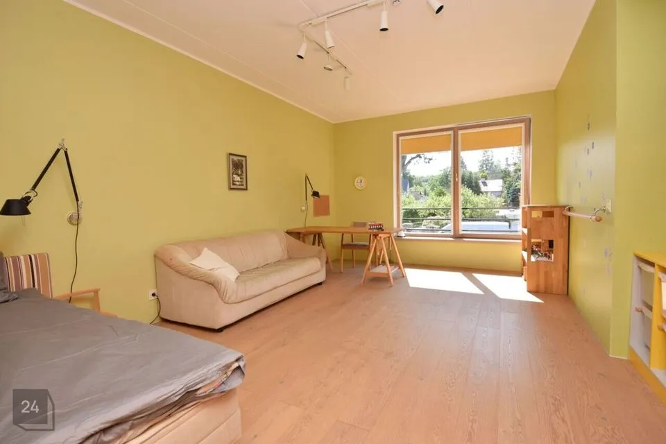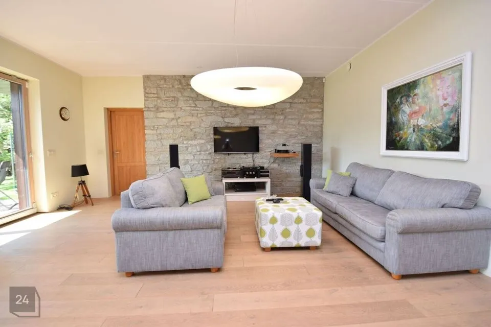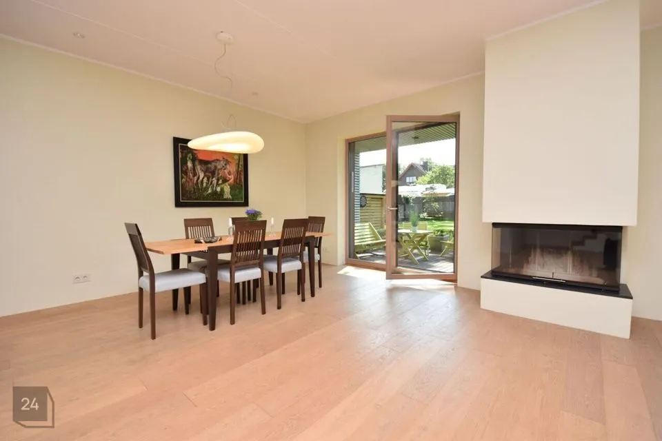 Suured maast laeni aknad vaatega aeda, elutoas kamin ja pääs lõunapoolsele terrassile (34,7 m2)