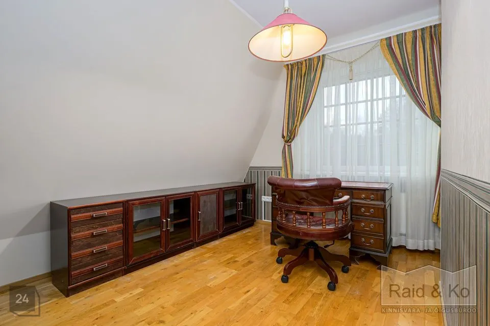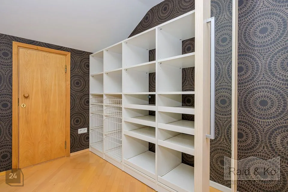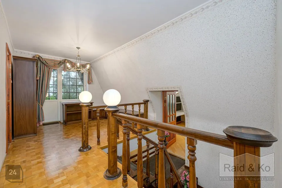 II korrusel on kolm magamistuba, garderoobid, kabinet, puhkenurk-raamatukogu ja vannituba.