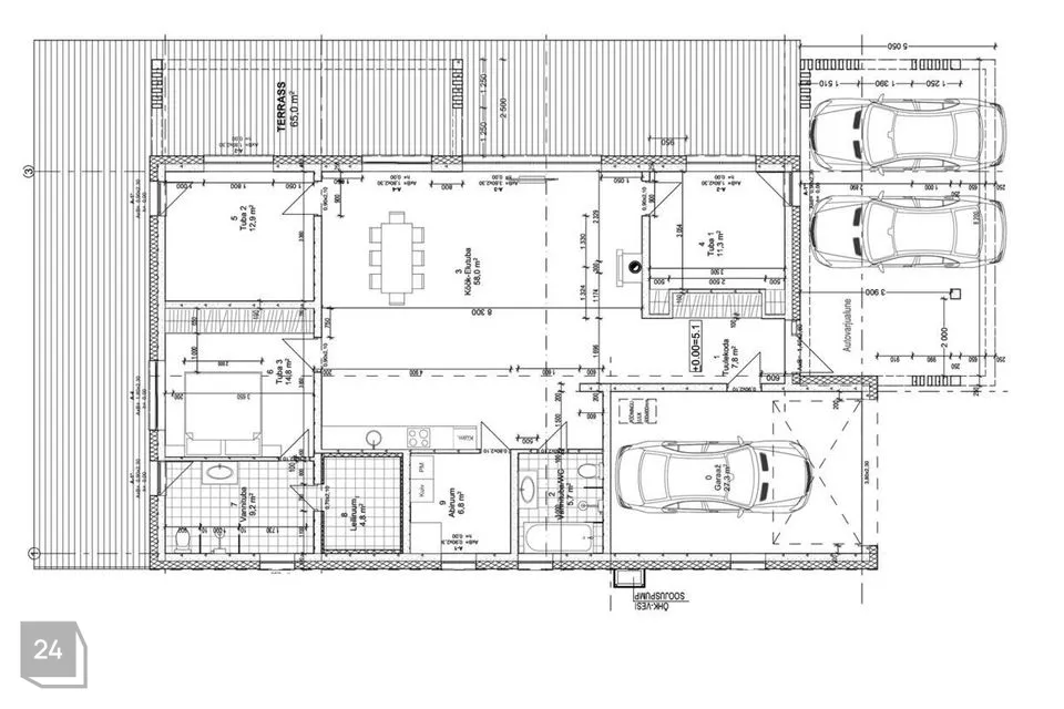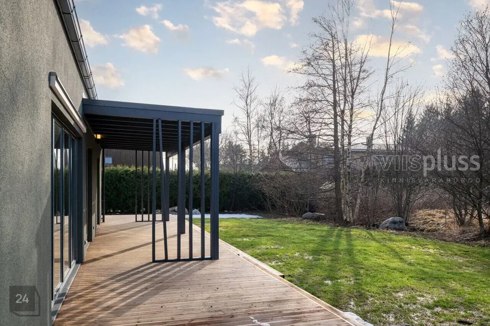 Maja kahest küljest piiratud avara terrassiga kuhu pääseb ka magamistubadest. Maja ees on suur parkimisala, kuhu mahub varikatuse alla 2 autot.
