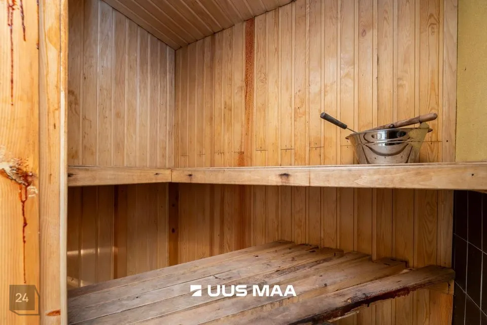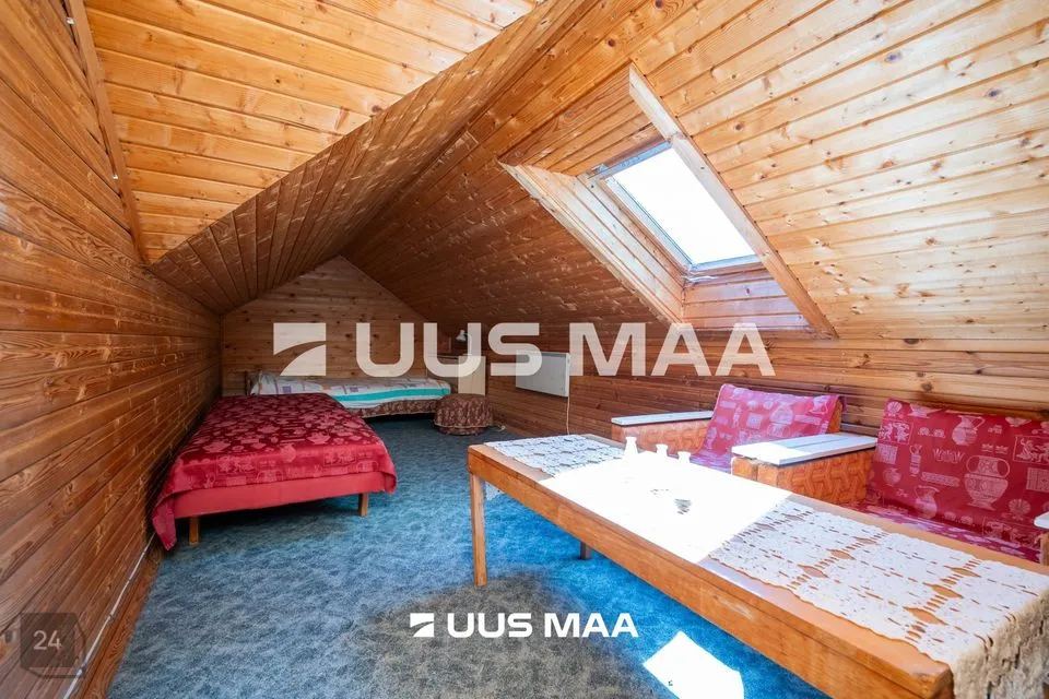 Esimesel korrusel: esik, köök-söögituba puuküttel pliidi ja elektripliidiga, kaminaga elutuba, kaks magamistuba, saun, tualettruum