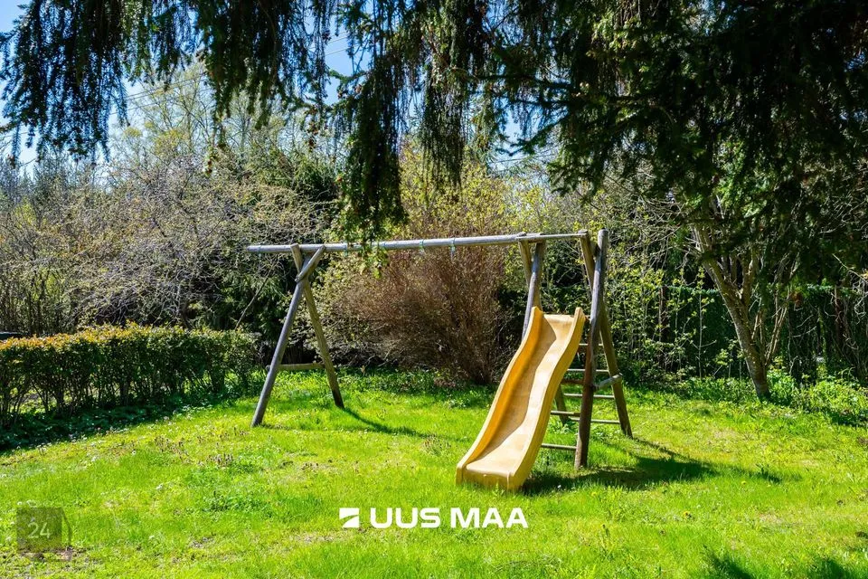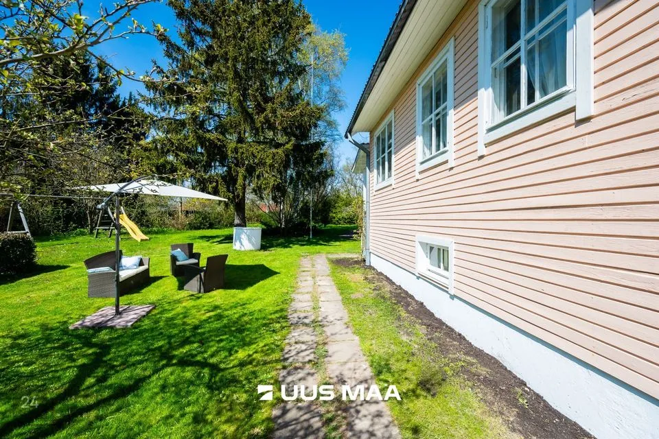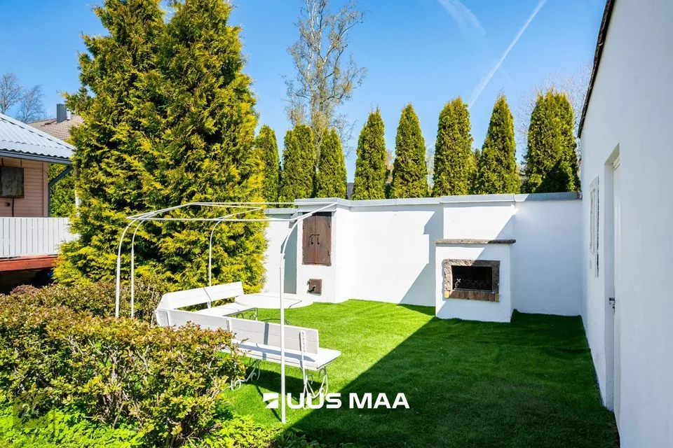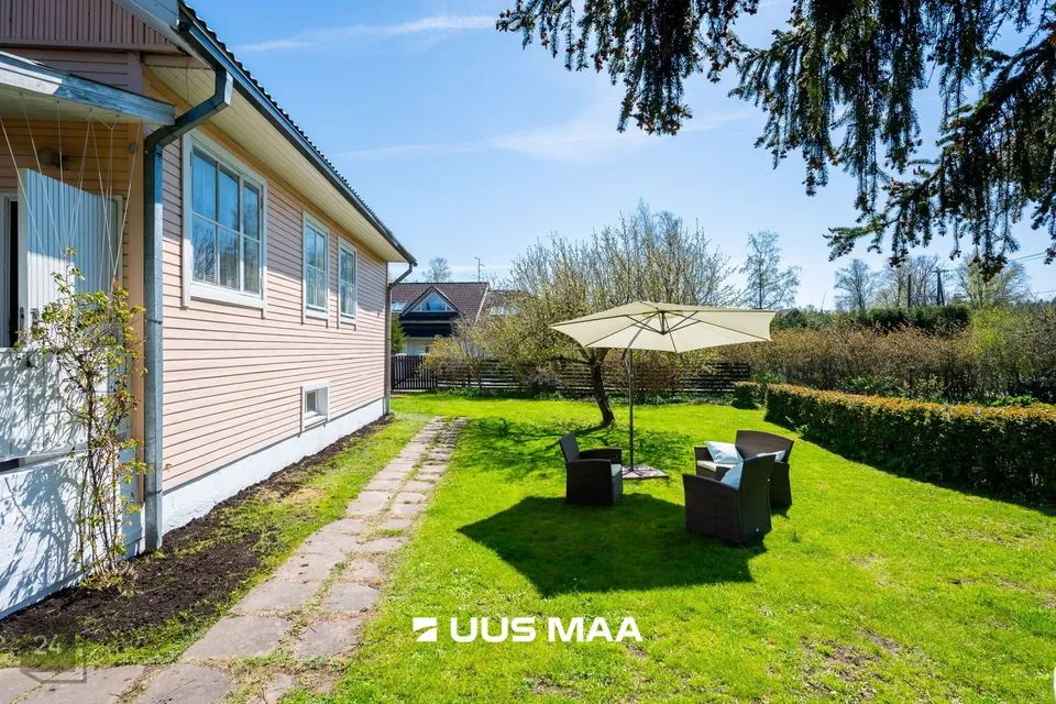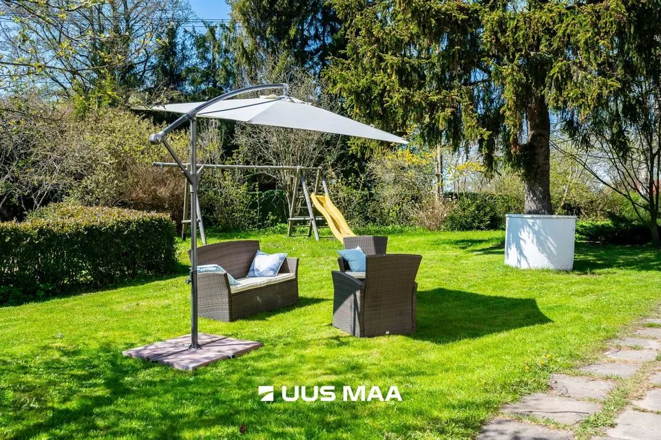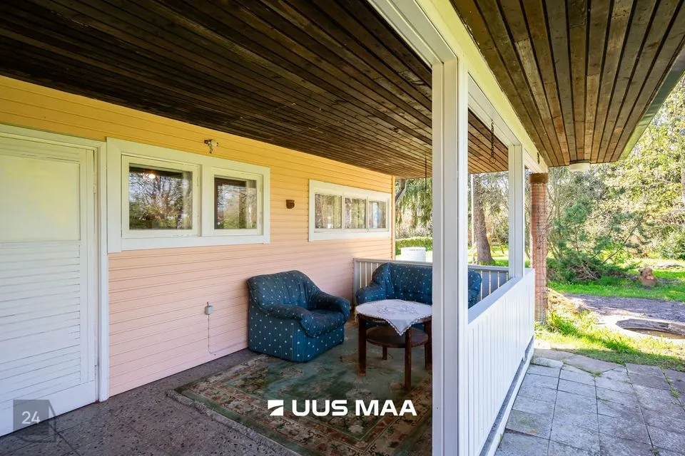 Maja taga asub katusealune veranda, kus on mõnus õhtupäikest nautida. Aias on istumiskohtadega grilliala ning laste jaoks mängunurk. Kinnistu paikneb väga vaikses ja privaatse tundega piirkonnas ning väravast paistab juba meri – randa on ligikaudu 100 meetrit.
