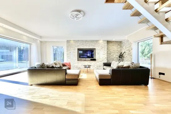 Ruumikas ja kapitaalne paksude seintega kivimaja asub pärnakate seas armastatud ja nõutud Mereküla eramupiirkonnas. Mereküla puhul hinnatakse lopsakat rohelust, mere lähedust ja vaikust. Maitsekalt sisustatud soojades toonides interjöör koos naturaalse puiduga loob rohkelt