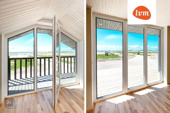 SUURE KINNISTUGA PALKMAJA MERE ÄÄRES.