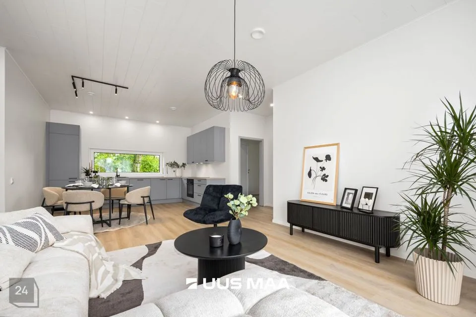 Avar köök ja elutuba moodustavad koos valgusküllase ja õdusa ruumi, kus nautida rahulikke hommikuid, ühiseid söömaaegu ning aeg-ajalt külla tulevaid sõpru või lapselapsi. See on kodu süda, kus loovad end soojad hetked ja head mälestused.