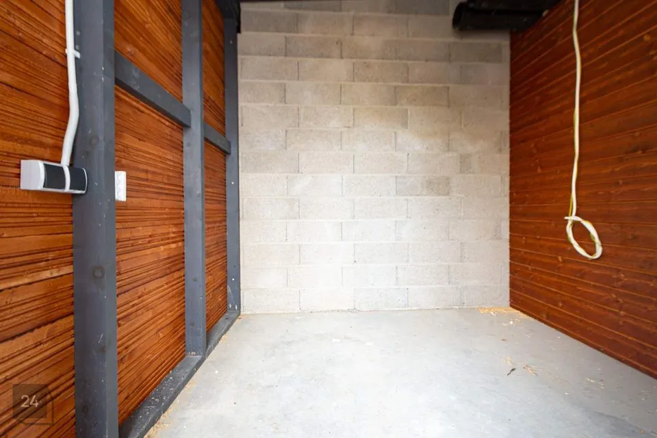 I korrus: Elutuba koos köögiga, tualett, pesuruum, katlaruum, saun, hall, terrass (15,5 m²) Lisaks maja ees on autovarjualusega parkimiskoht, mille kõrval asub panipaik (5.4 m²).