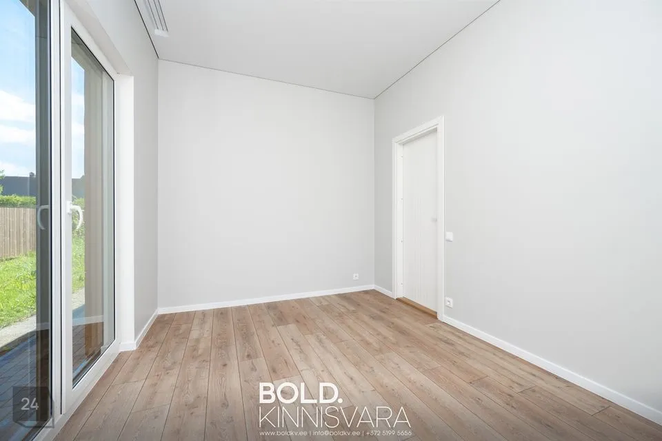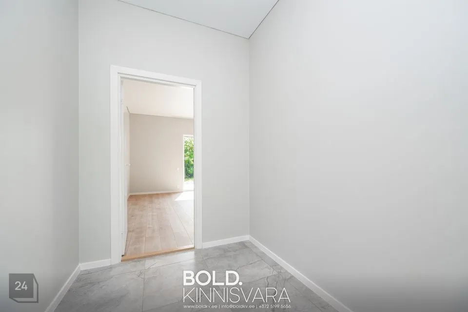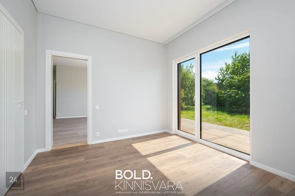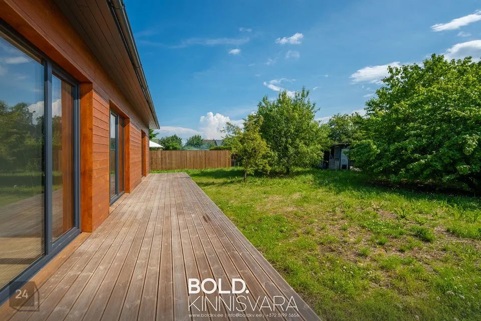 2025 aastal kvaliteetselt ehitatud tasase krundi peal (821 m2) kaasaegses modern-stiilis puitmaja ehitusalase pinnaga 120 m2 on läbimõeldud planeeringuga, kus igal pereliikmel hea olla ja koosneb avarast esikust, kuhu saab paigaldada integreeritud garderoobikapp, elutoast avatud köögiga millest pääeb majapidamisruumi (ja sealt edasi ka tehnoruumi), magamistoast, millest pääseb läbi walk-in garderoobi oma vannituppa (WC, kraanikauss, dušš) ja kahest lastetoast teisel maja poolel, kus üks neist on korralikult suurem (saab kasutada ka kabinetina). Lastetubade kõrval eraldi vannituba (WC, kraanikauss, vann), nii et maksimaalne privaatsus on tagatud.