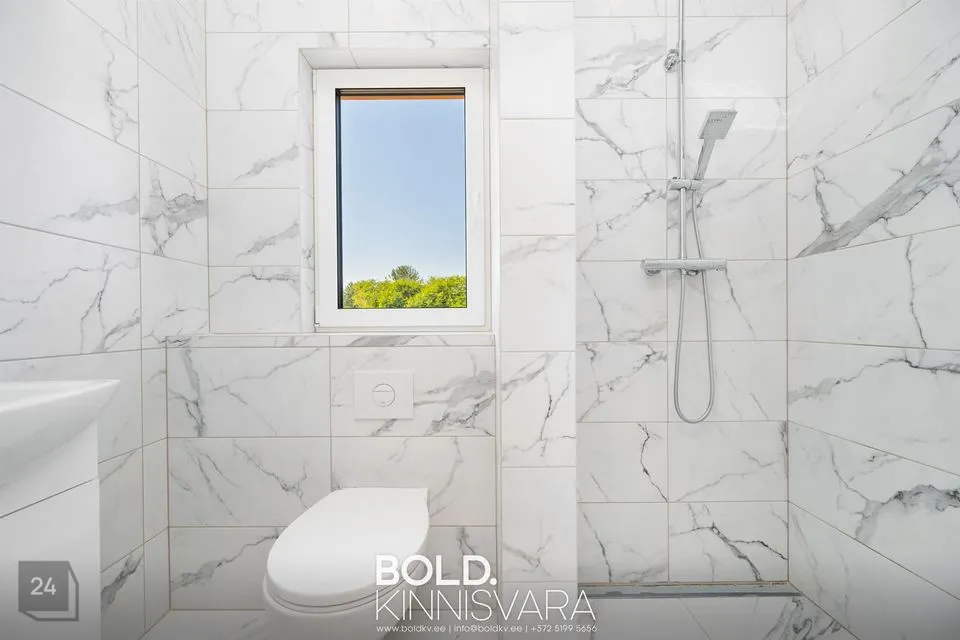 Elutoas ja magamistubades on suured 3-kordsed panoraam-pakettaknad põrandani. Elutuast pääs nii kööki, kui ka vannituppa ning avatud päikeseküllasele terrasile tagaaias. Kõrged laed majas annavad palju avarust ja õhku, suured aknad põrandani - valgust. Lisaks on ka avar pööning kus keskel on 1.70m kōrgus (vajadusel saab kasulik lisapind välja ehitada).