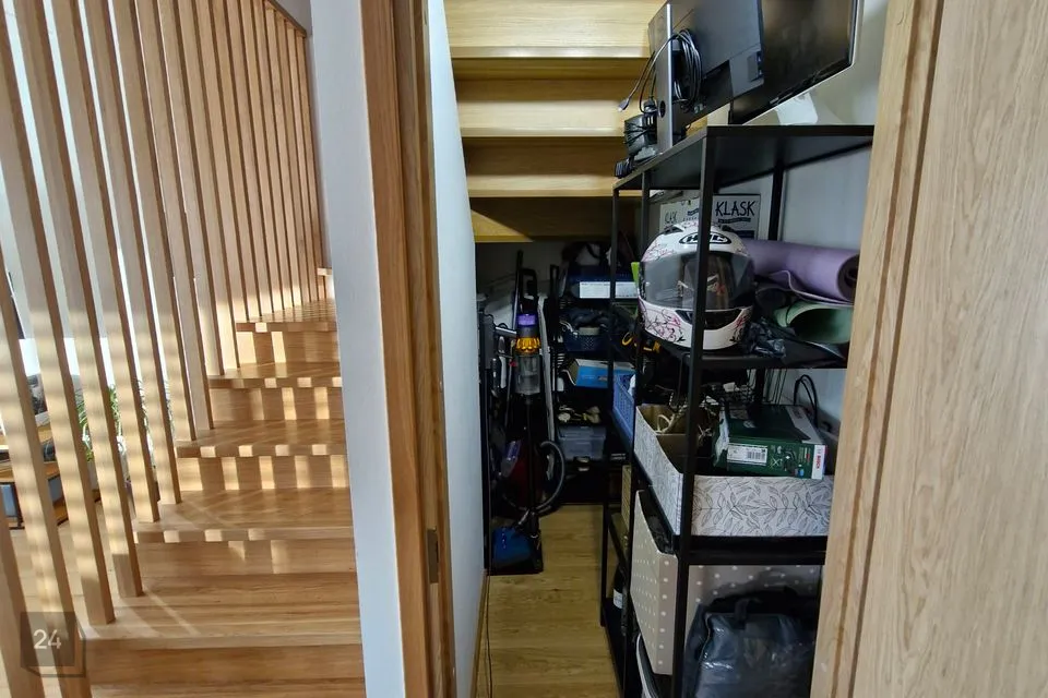I korrus: Avar avatud köögiga elutuba, kust avaneb pääs 17,2 m² suurusele päikesepoolsele terrassile. Esimesel korrusel asuvad veel saun koos duširuumiga, eraldi WC, praktiline sahver köögi juures ning mahukas trepialune panipaik. Välisukse kõrval on eraldi sissepääsuga tehnoruum, mida saab kasutada ka panipaigana.