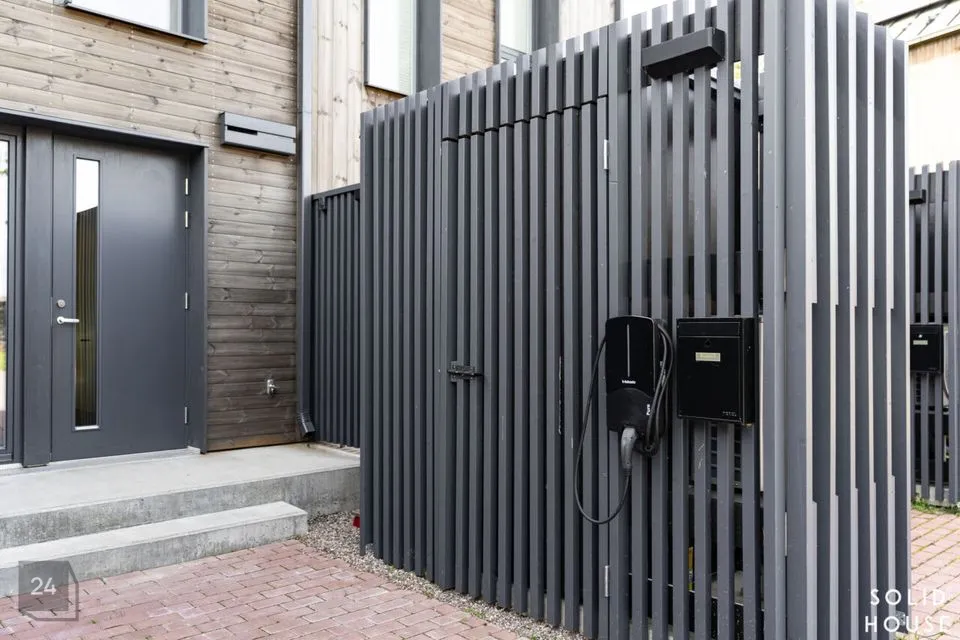 Boksi juurde kuulub panipaik ja maja ees paiknev parkimiskoht elektriauto laadimisvõimalusega.