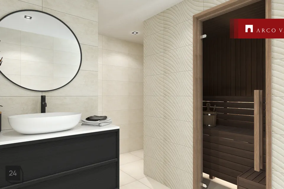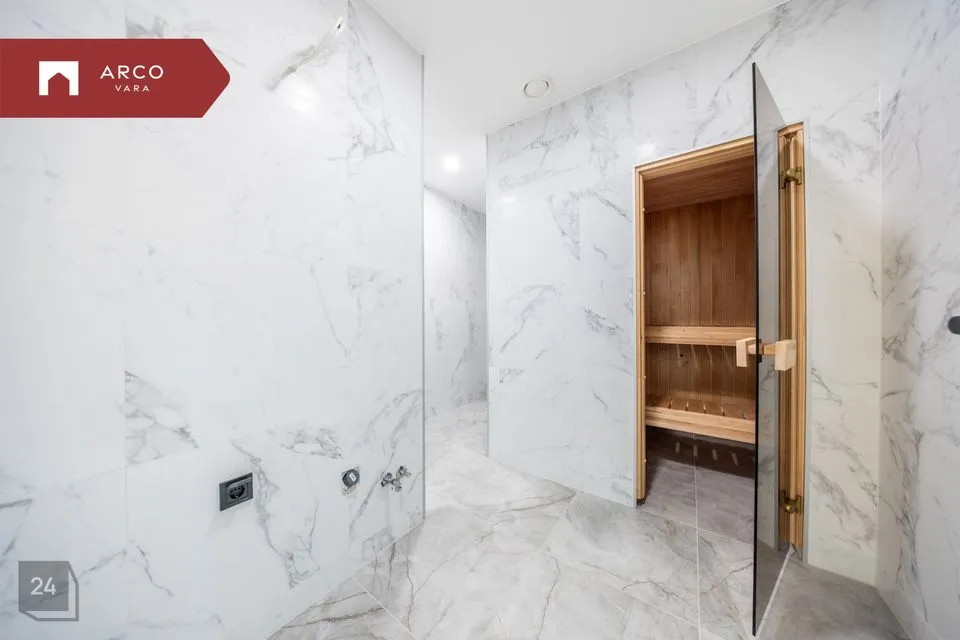 Kvaliteetne sanitaartehnika: saunakeris, vann, dušš ja WC potid.