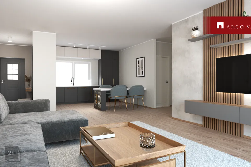 Avar, maast laeni akendega, avatud köögiga ja läbi maja planeeringuga elutuba, 4 magamistuba, suur tehnoruum/panipaik, kaks WC'd ja vannituba/duširuum ning saun ja ruumikas esik.