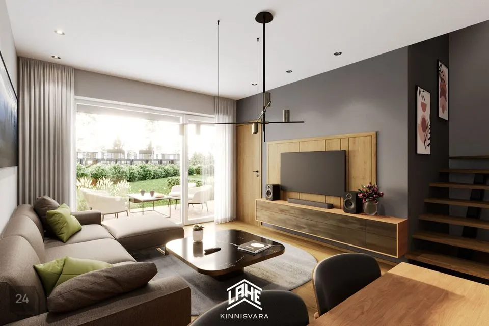 KORTER 3 elamispinna moodustab 97,4 m², millest 3,5 m² on isiklik panipaik. Lisandub 13 m² terrass koos 1,2 m² panipaigaga ja isiklik ca 75 m² aiaga piiratud hooviala.