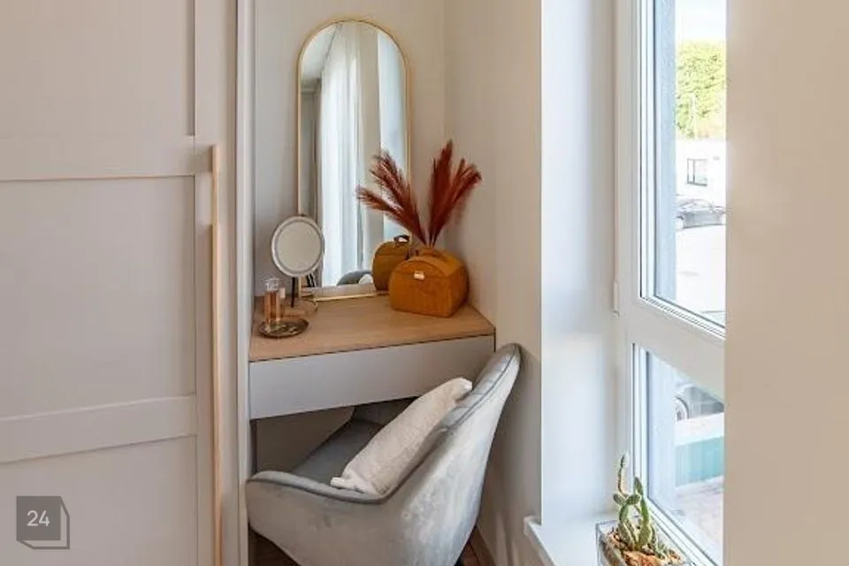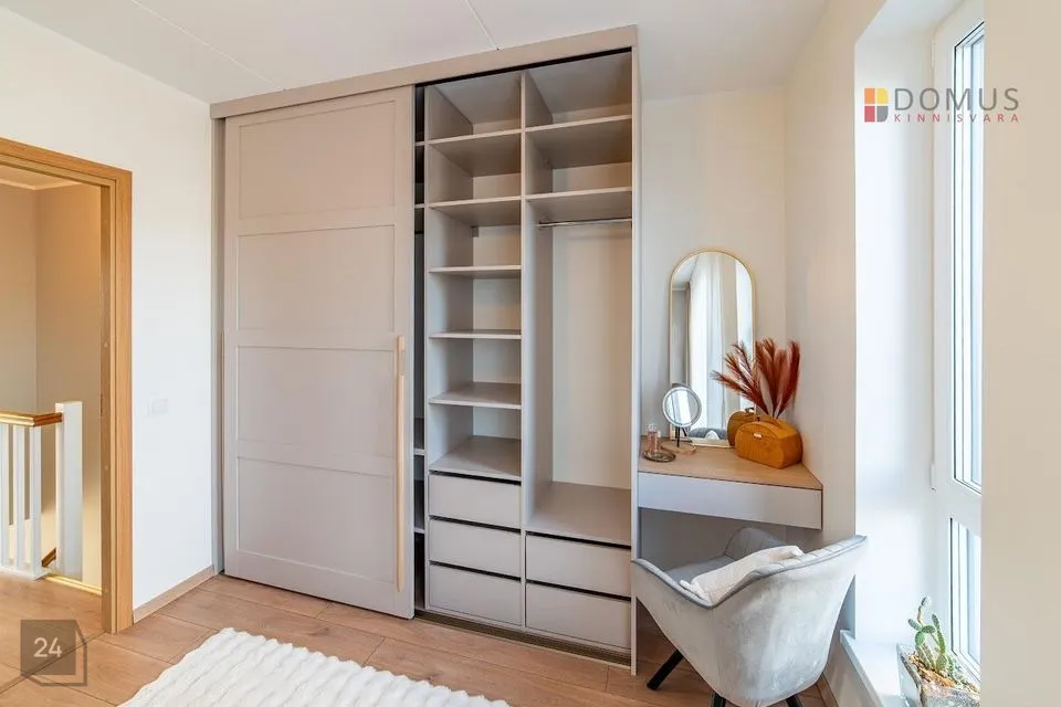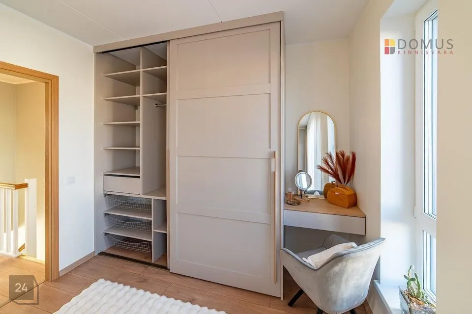Suures magamistoas erilahendusena valminud garderoobikapp tootjalt Liuglev Uks, peegel, tugitool