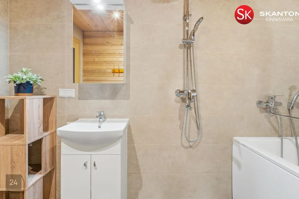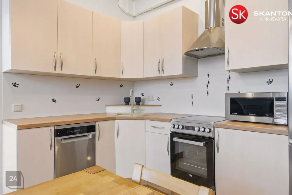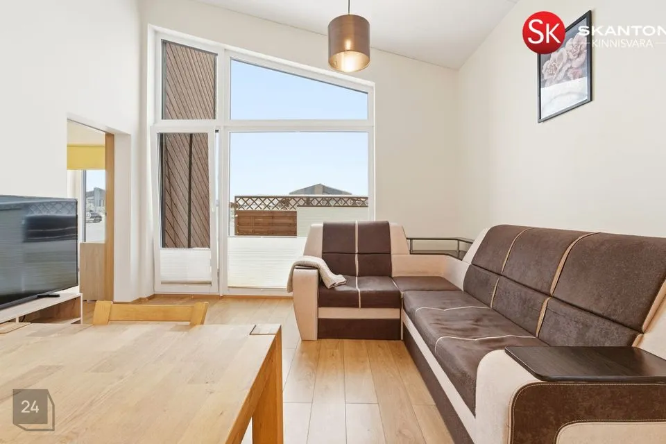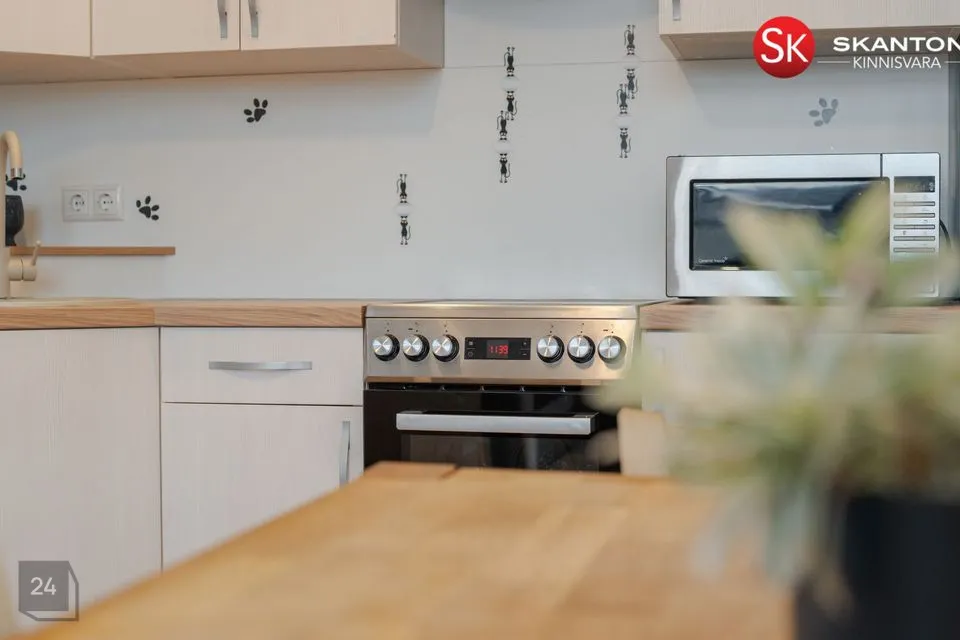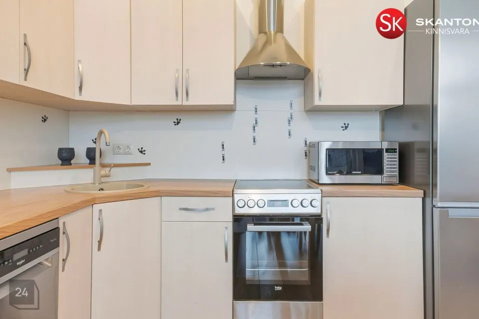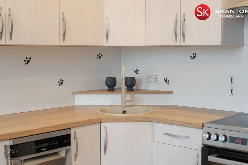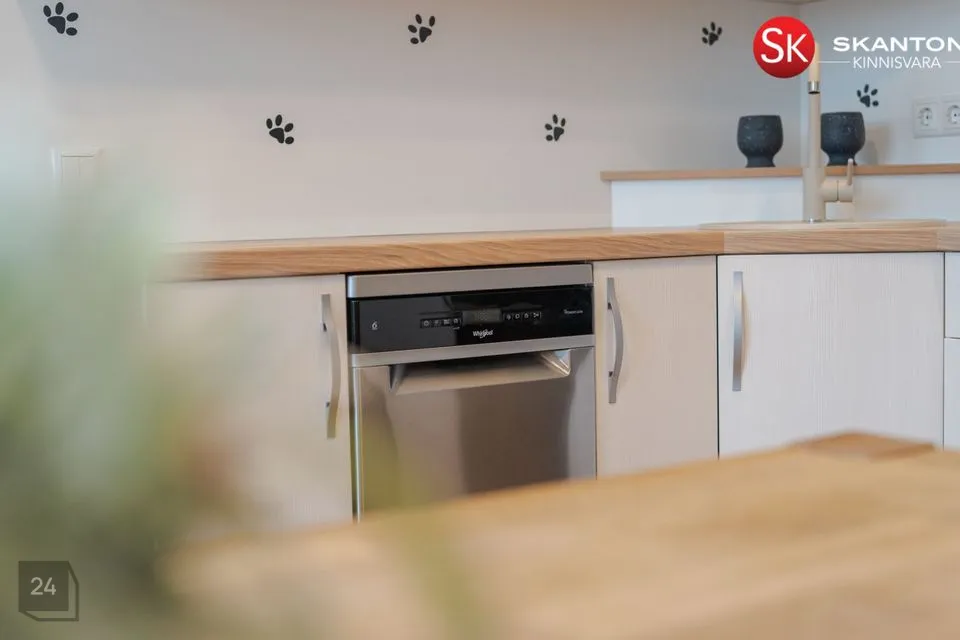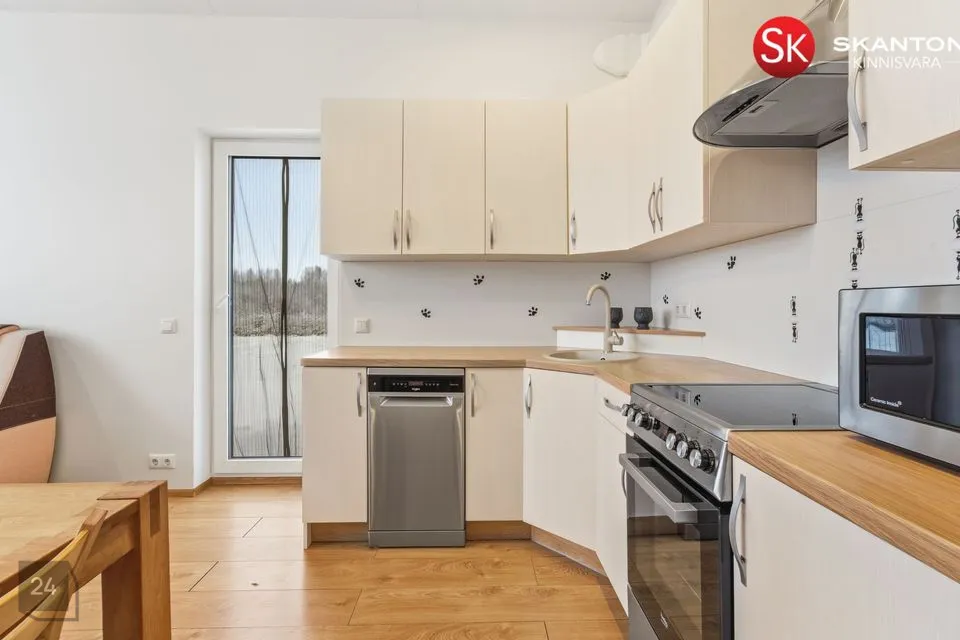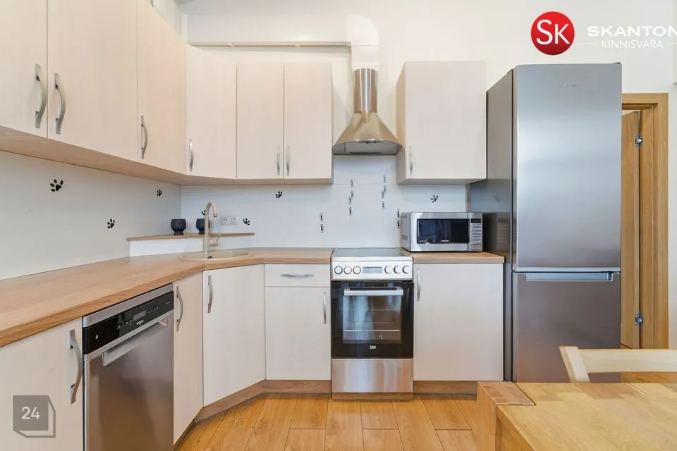 Põrandaid katab laminaat-parkett. Suur elutuba avatud köögiga ja teised avarad ruumid loovad hubase ja kaasaegse elukeskkonna. Müügihind sisaldab köögimööblit koos tehnikaga( külmkapp, nõudepesumasin, elektripliit, mikrolaineahi ja pesumasin).