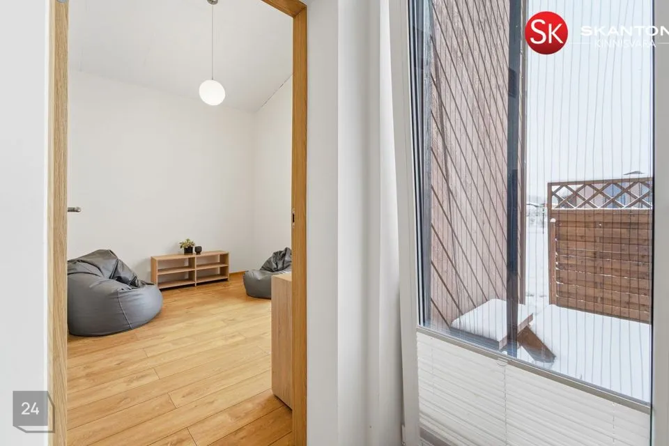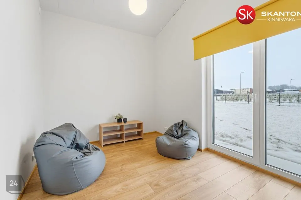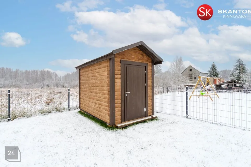 Eraldi sissepääsuga on hoones veel kuur(6,3m²) ning maja ees on parkimisplats kahele autole. Elamu tagumisel küljel on suur terrass ja sinna pääseb avatud planeeringuga köök-elutoast.