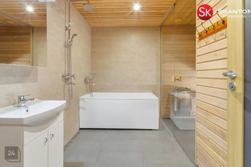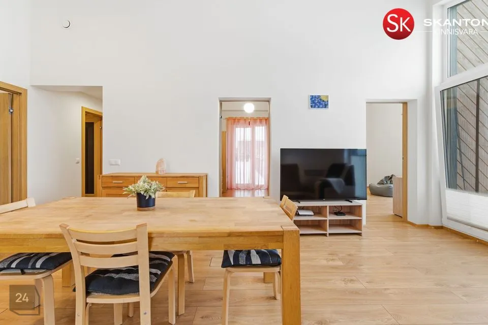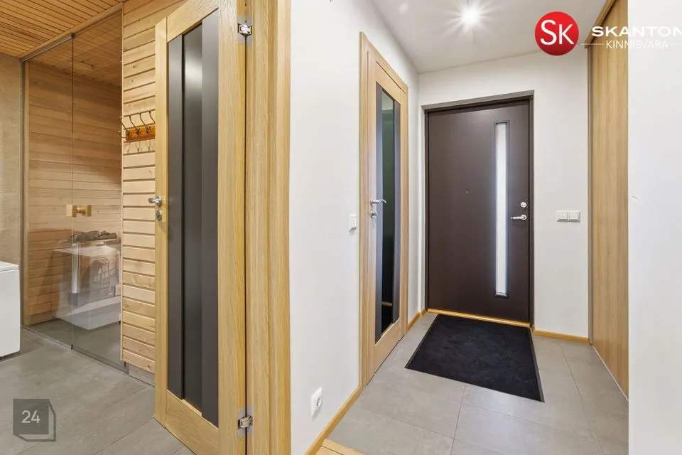 Valgusküllane ja ajatu siseviimistlus, kus domineerivad heledad ja soojad toonid ning suured aknapinnad. Valgust jagub kõikidesse tubadesse.