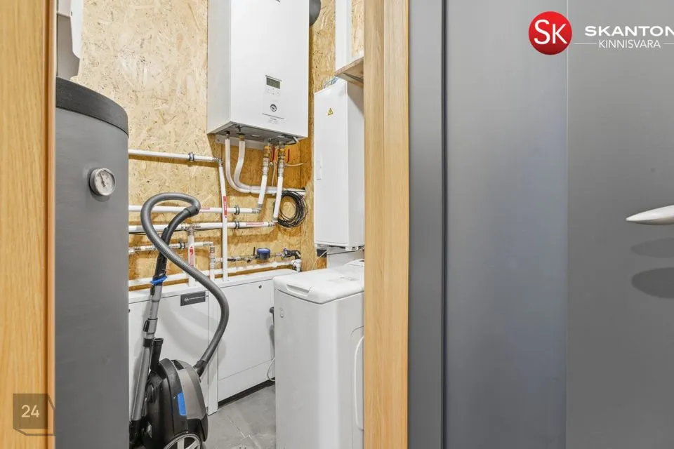 Hoones on põrandaküte. Soojusallikaks on õhk-vesi soojuspump, mis töötab elektriga. Leiliruumis on elektrikeris. Majas on antud luba ehitada soovi korral kamin. Võrreldes tavalise elektriküttega on igakuine keskmine õhk-vesi soojuspumba elektrikulu soodsam. Kommunaalmaksed: suvel ca´65€ ja talvel 135€