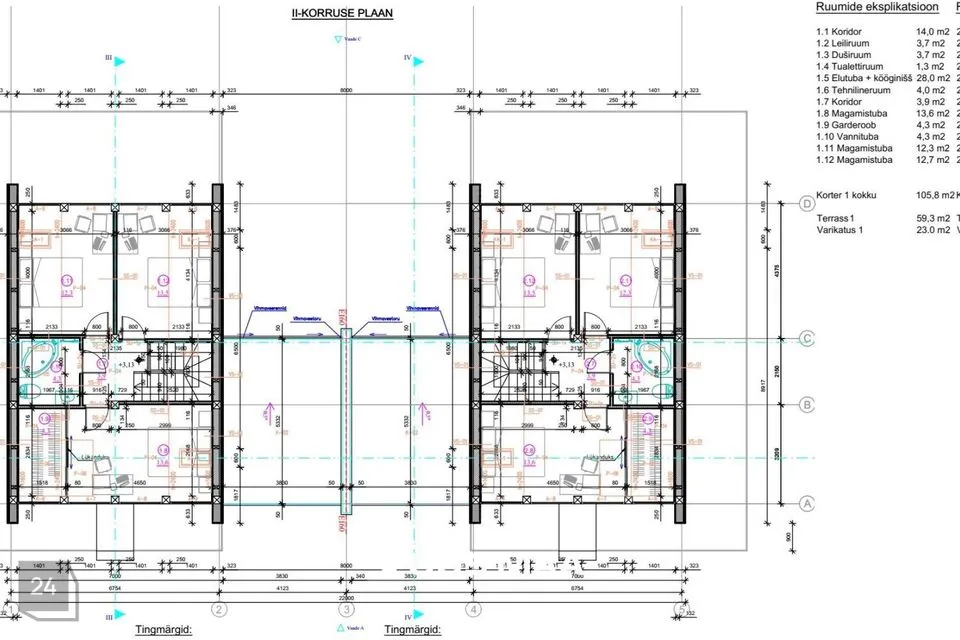 Korter nr 2 – 105,8 m², sh tehnoruum 4 m2, lisandub terass