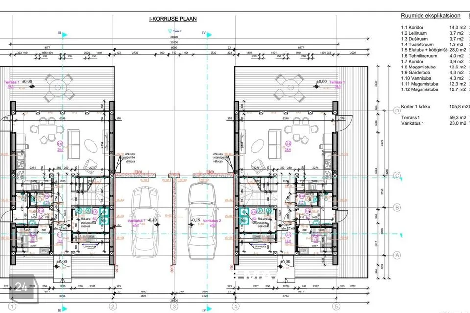 Korter nr 1 – 105,8 m², sh tehnoruum 4 m2, lisandub terass