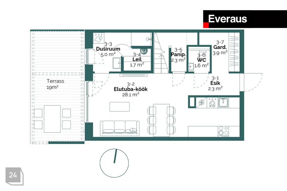 Korter nr 3 on 5-toaline suurusega 104 m2 (koos 3,5 m2 panipaigaga), 19 m2 terrassi ja 101 m2 hoovialaga. Korteris on avatud köögiga elutuba ja neli magamistuba. Korterile lisab avarust terrass maja lääneküljes.