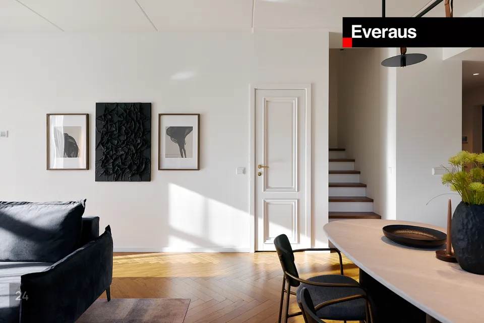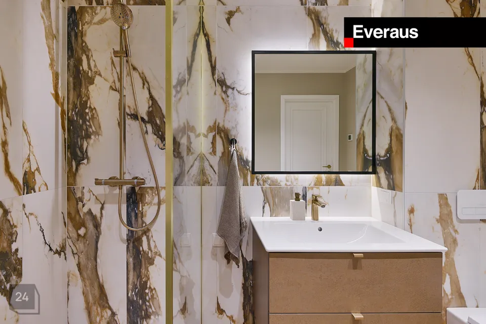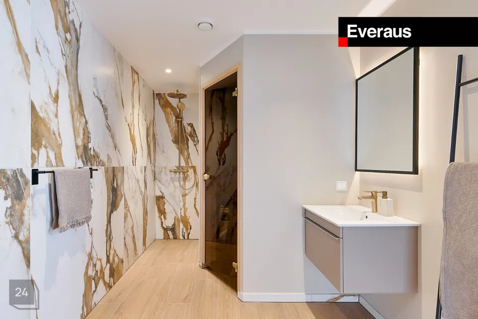 Põrandaid katab kvaliteetne kalasabaparkett, tube eraldavad Haapsalu Uksetehase siseuksed, sanitaarruume ilmestavad kvaliteetsed keraamilised plaadid ning Villeroy & Boch keraamika ja Hansgrohe tehnika.