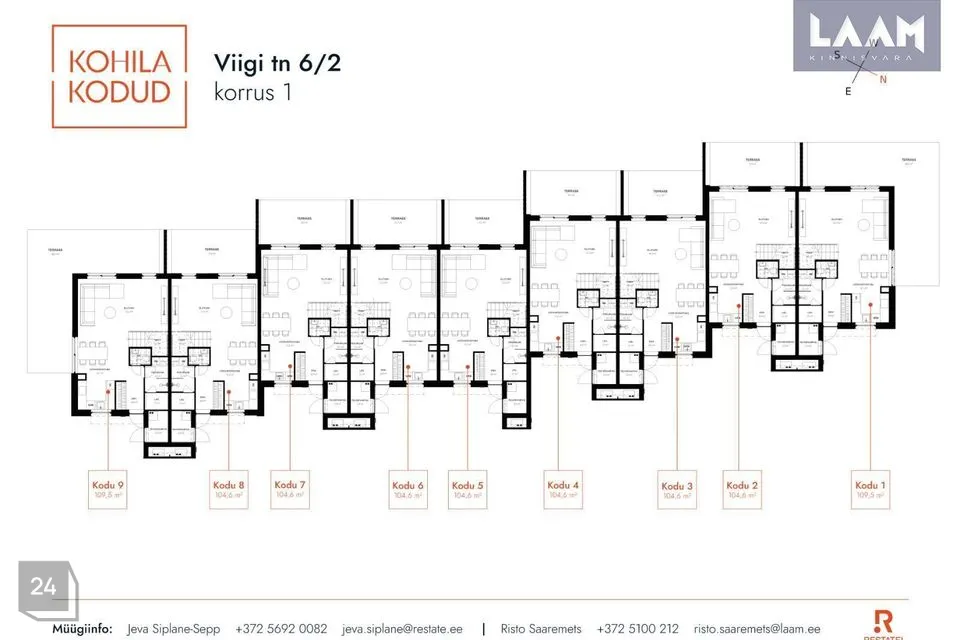 Kolimiseks valmis 5-toalised A-energiaklassiga ridaelamuboksid roheluse keskel.