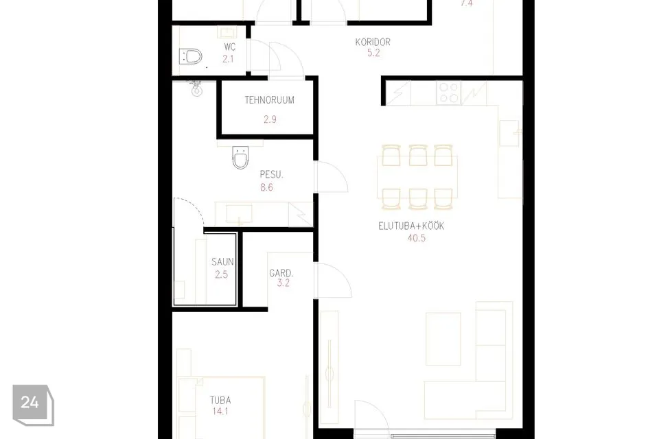Sutika tee 33-4 pindala 109,6 m² (hooviala 118 m²) - 239 000 €