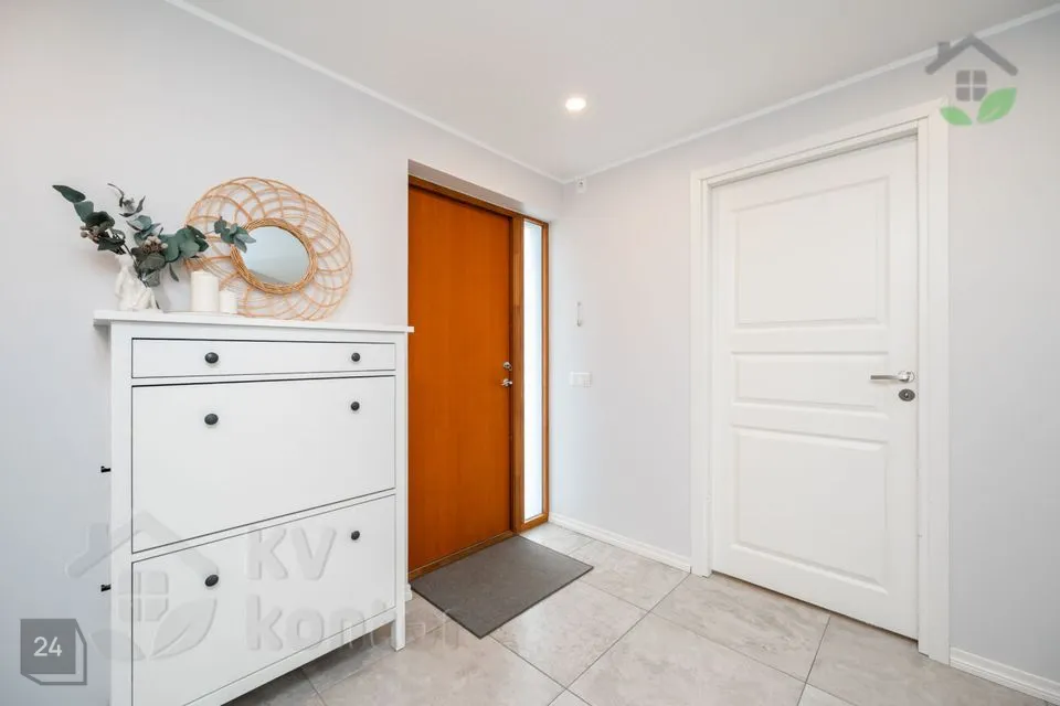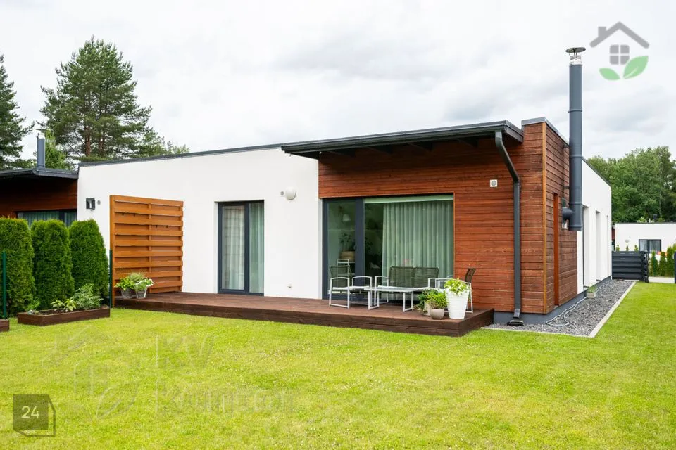 - Kaunis valge krohvitud fassaad pruunide laudise detailidega annab majale kaasaegse ja sooja ilme