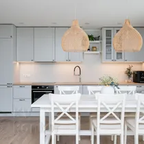 - Köögis on kaasaegsed seadmed: külmik, ahi, pliit, mikrolaineahi ja nõudepesumasin (XL mõõdus 60 cm), mis teevad toimetused lihtsaks