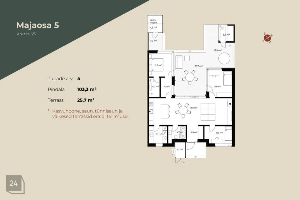- välisauna moodulit (arhitektuur kooskõlas ridaelamutega). Saun 3,9 m² - HINNALISA 10 000 €