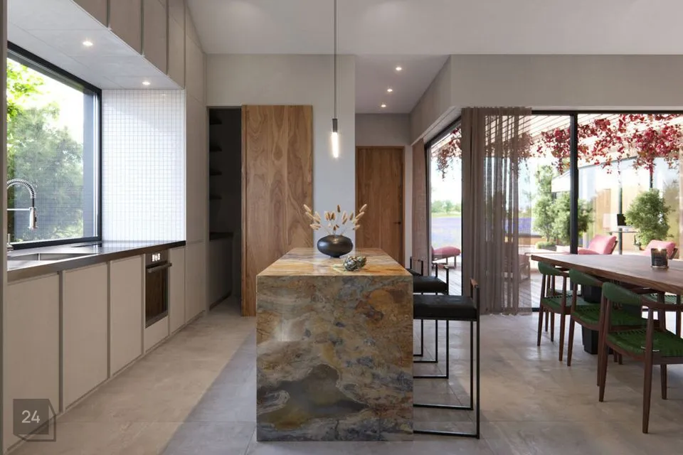 Hele, kaasaegne ja minimalistliku olemusega arhitektuur moodustab sümbiootilise terviku loodusega.