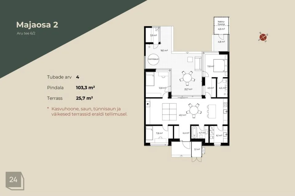 - välisauna moodulit (arhitektuur kooskõlas ridaelamutega). Saun 3,9 m² - HINNALISA 10 000 €