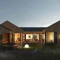 Sellel pinnal paikneb voolavalt 4-toaline pereelamu. Iga majaosa on ühekorruseline ning kõrgete lagedega. Maja keskseks elemendiks on individuaalne siseõu, mille ümber paiknevad toad. Siseõu annab võimaluse luua privaatsem ja vabamalt kasutatav hooviala. Ridaelamut liigendavad viilkatused ja madalakaldelised varikatused.