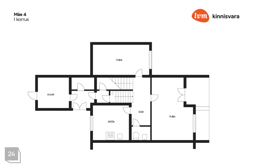 Esimesel korrusel asuvad elutuba, köök uue köögimööbli ja vajaliku tehnikaga, värskelt uuendatud duširuum koos tualetiga ning eraldi töötuba. Planeering on praktiline ja mugav, tagades sujuva liikumise kõigi ruumide vahel.
