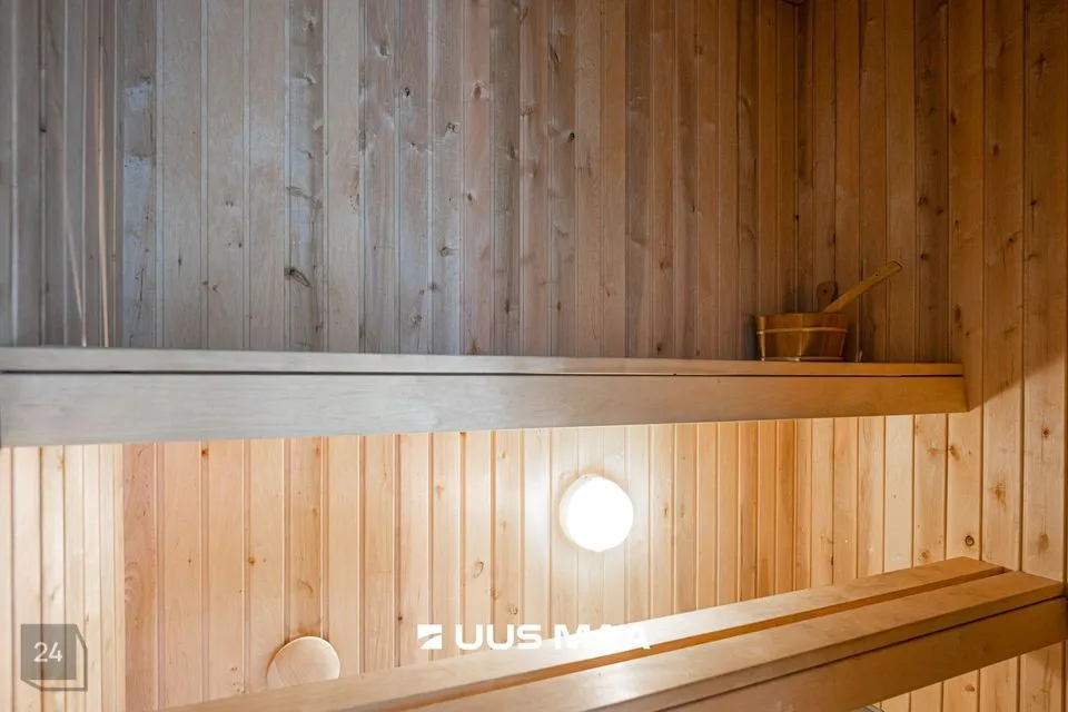 Müügihind sisaldab kogu siseviimistlust (põrandal parkett, spoonitud siseuksed, saun valmis kujul, kamina valmidus, plaaditud san ruumid jne.), haljastatud krunti ja piirdeaeda.