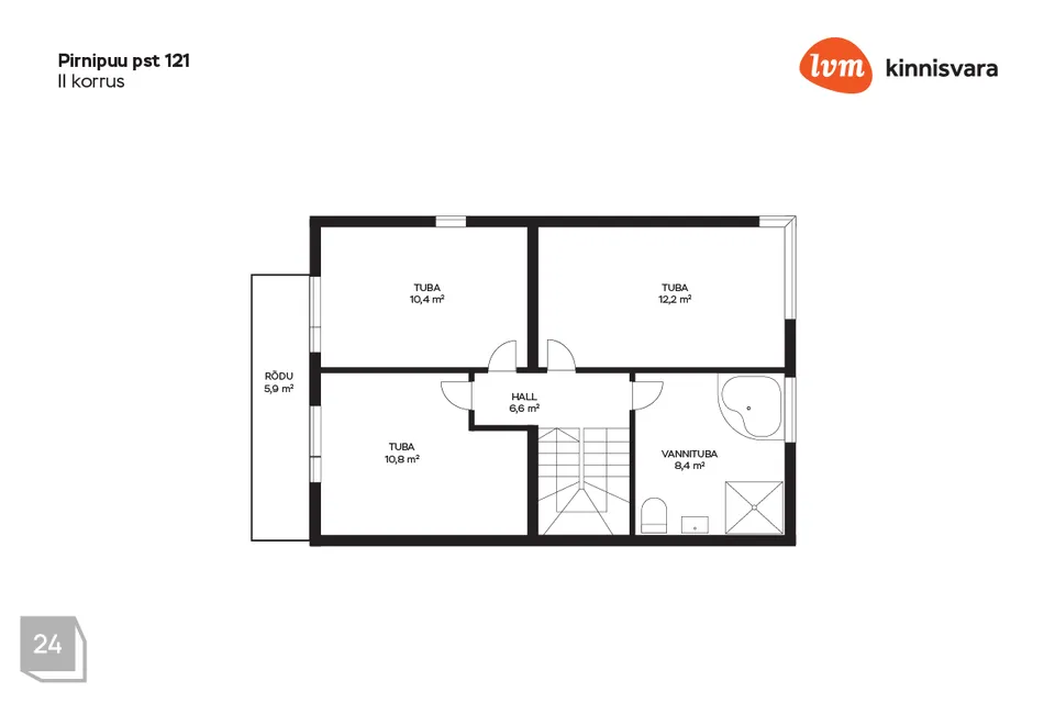 Teisel korrusel on kolm magamistuba ja pesuruum.