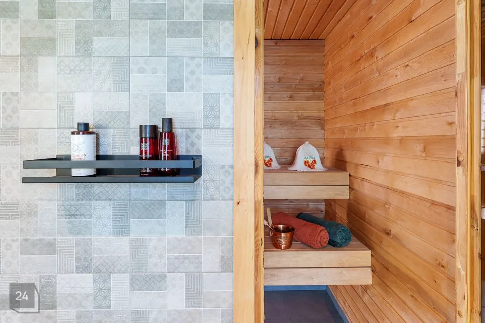 - Vannitoad: II korruse vannitoas on nii vann kui ka klaasitud dušinurk, eritellimusel valamukapp ja suur peegel, mis lisab avarust. Otse lumisest metsast kuuma leili — sinu isiklik saun ootab esimesel korrusel.