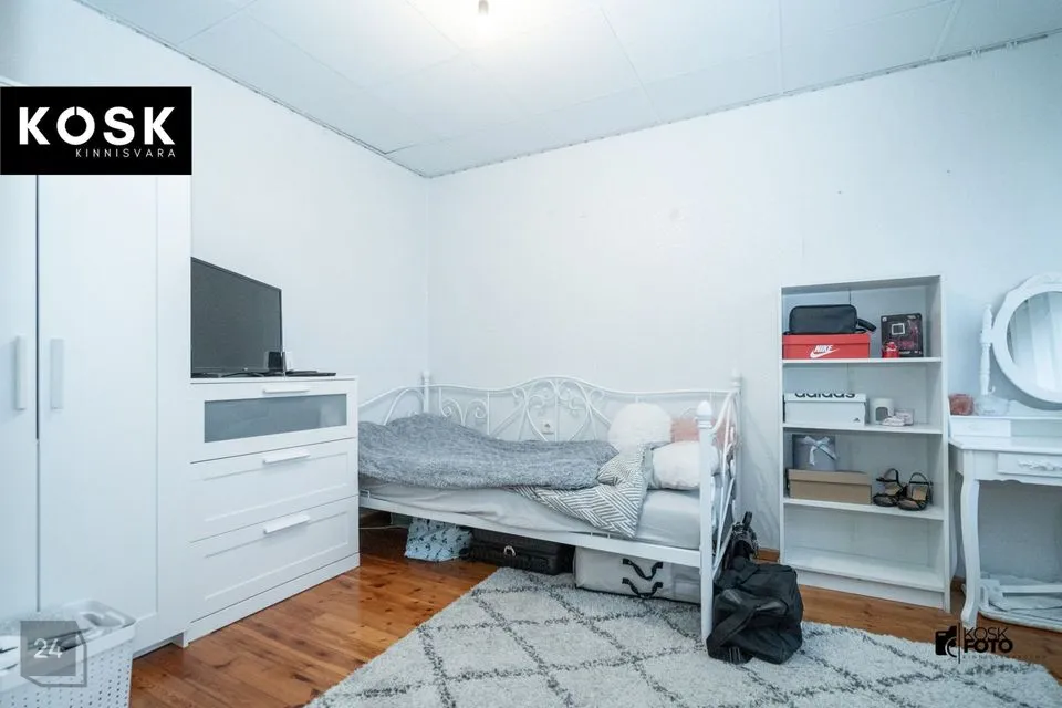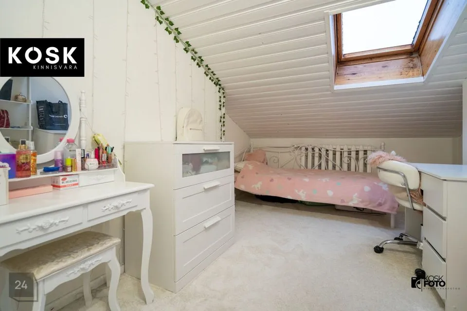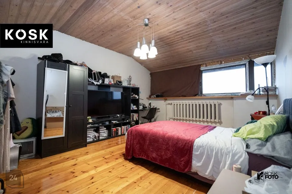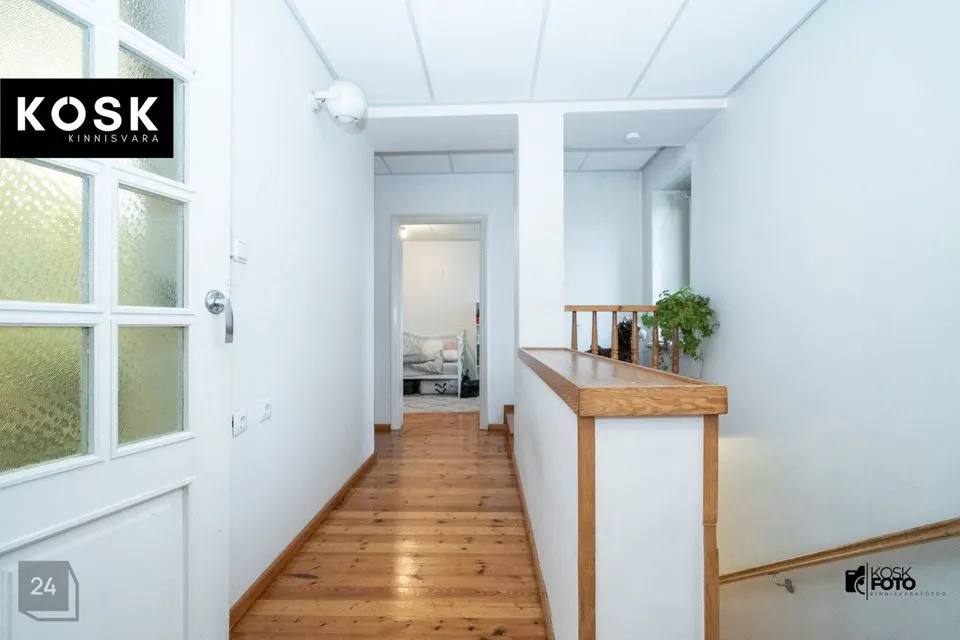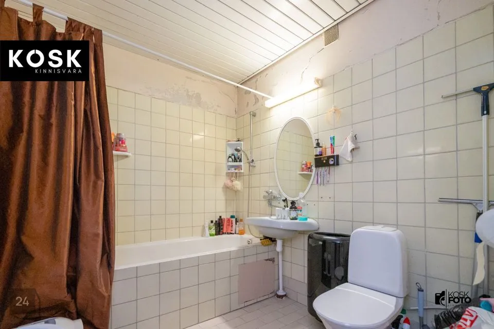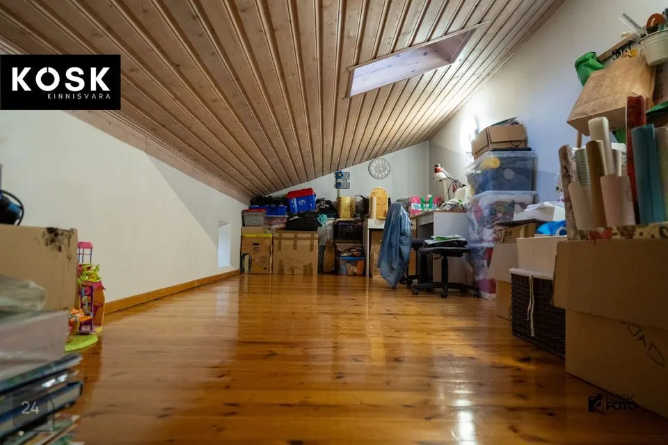 Heating is versatile and flexible: district heating with radiators, plus fireplaces, a stove in the sauna room, and an air heat pump that also functions as cooling.
