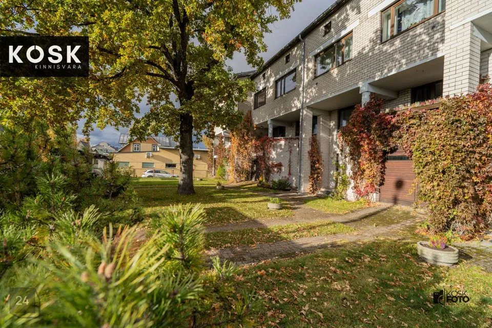 A well-designed terraced house with 4 apartments. This terraced house section is located in the center. There is an active Apartment Association. The building is based on a low foundation and load-bearing structures are made of brick. Exterior walls are also made of brick and small blocks, with high-quality ceramic brick as exterior finishing. Intermediate floors and roof structures are made of precast reinforced concrete, with a durable sheet metal roof. The terraced house lacks stairwells, with convenient separate entrance to each apartment directly from the yard.