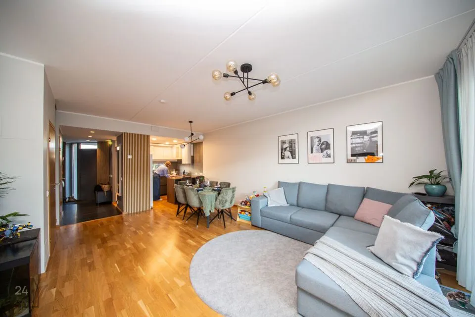 Avar ja valgusküllane elutuba (27,2 m²), kust pääseb otse terrassile ja privaatsele hoovialale.