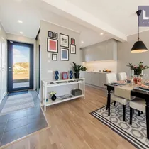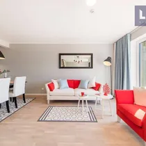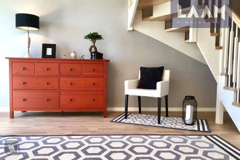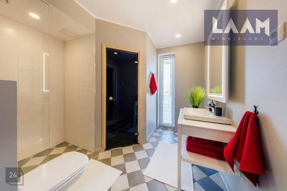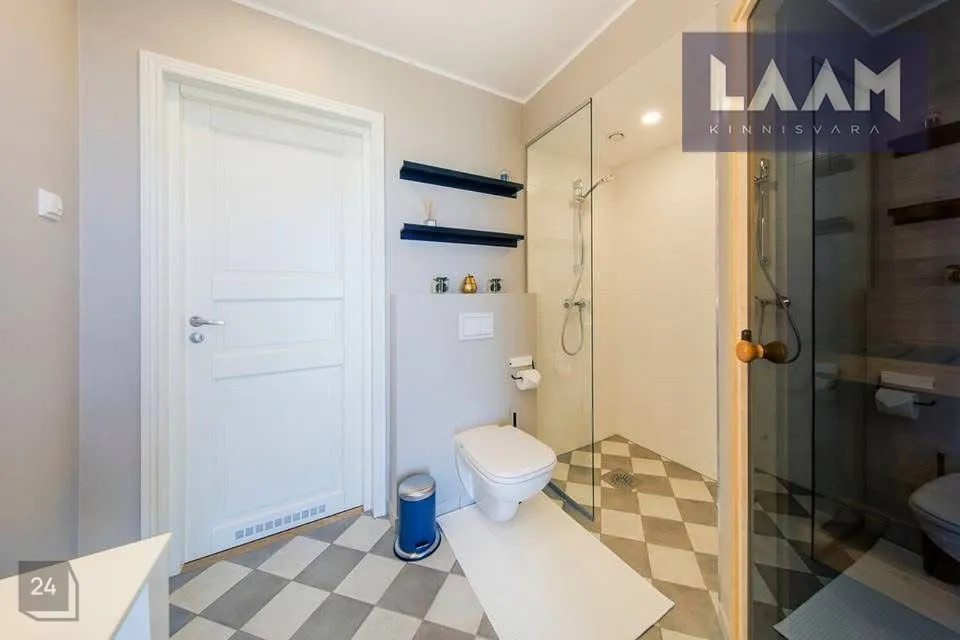 •Siseviimistlusega luuakse hubane kodu, kus on mahedad toonid ja kvaliteetsed materjalid. Kasutatud on naturaalset tammepuitparketti, keraamilisi plaate ja SWEDOOR'i mantelservaga massiivuksi. Sanitaartehnika firmadelt DURAVIT ja HANSGROHE.