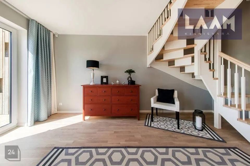 Ridaelamu kroonjuveeliks on esimesel korrusel asuv avar ja valgusküllane elutuba suurusega 36 m2. Privaatse nurgaga köögiala ( 5,9 m2) on ühendatud elutoaga.
