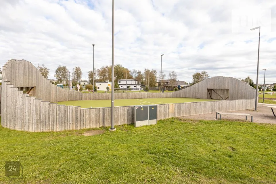 Rahulik elukeskkond tänavavalgustuse, asfalteeritud teede, kergliiklustee ning lastemänguväljakutega.